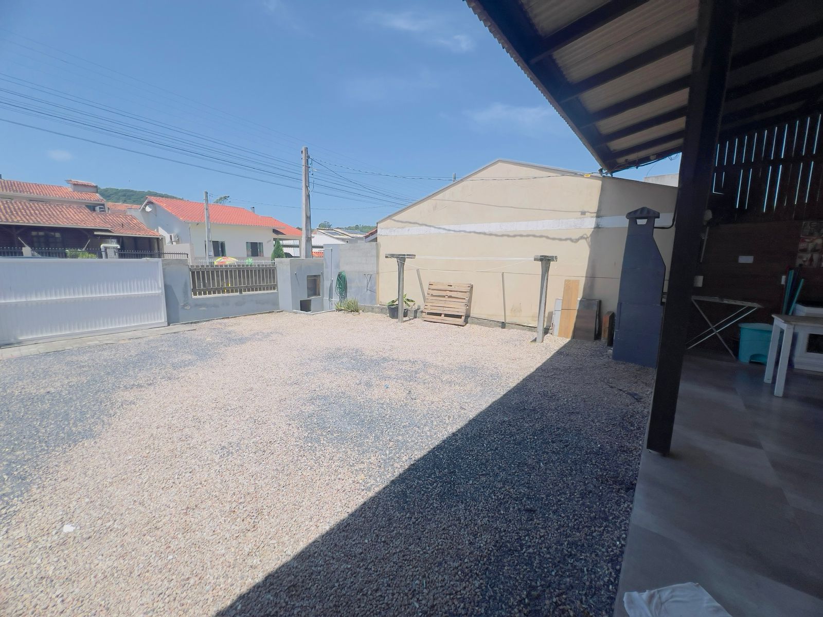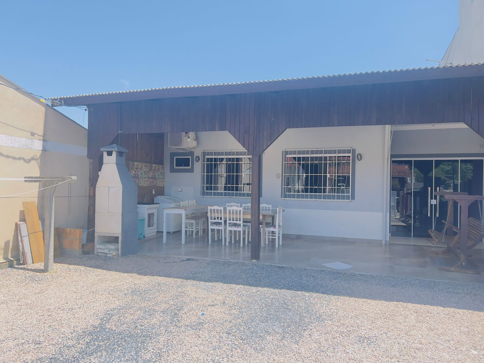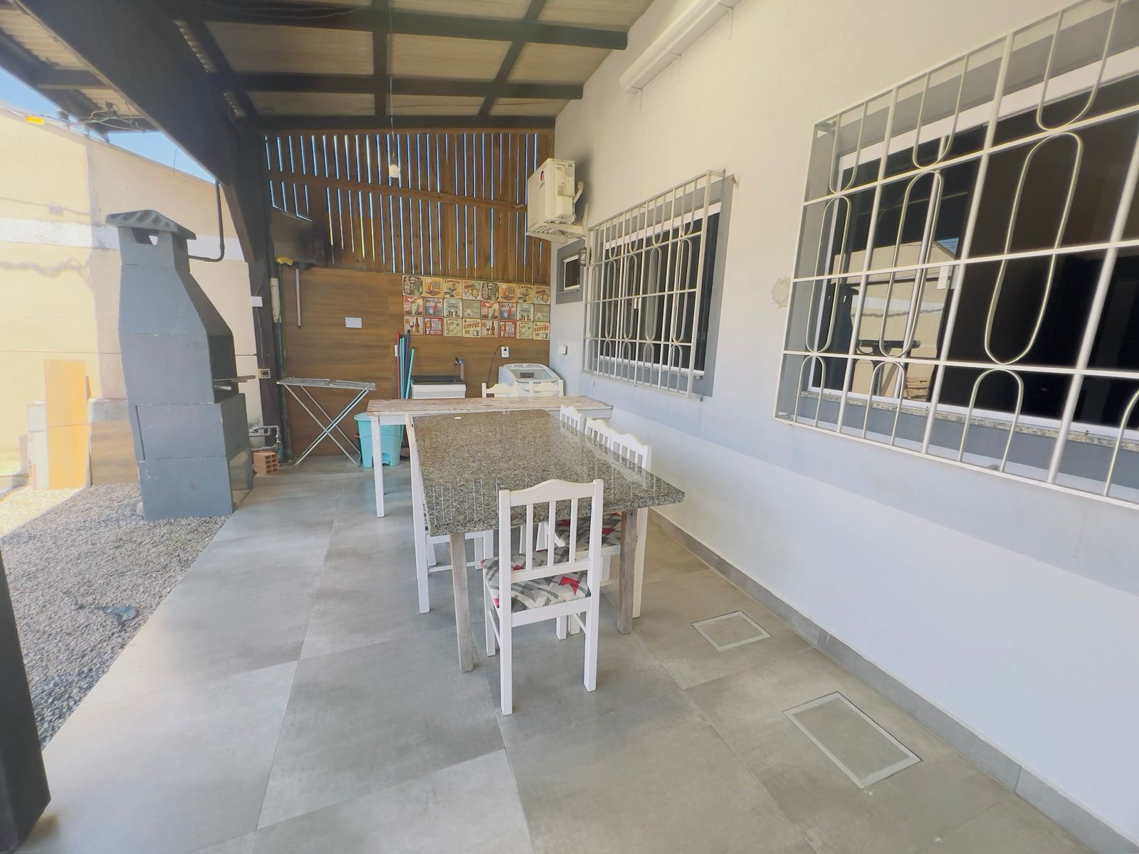 Área com churrasqueira e máquina de lavar roupas