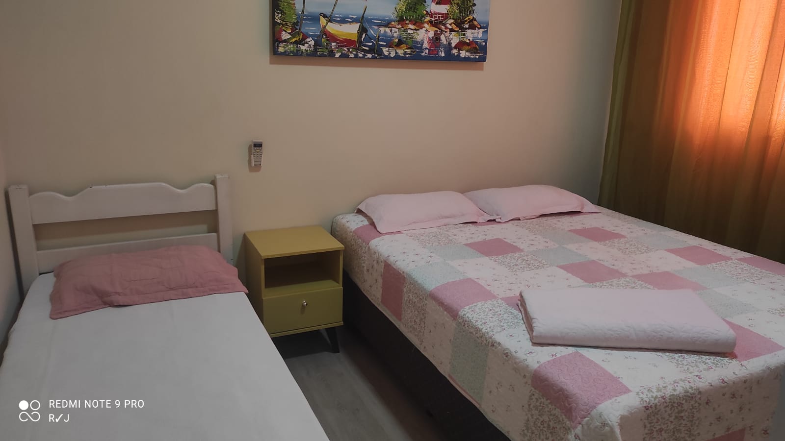 01 dormitório com cama de casal e 1 cama solteiro e ventilador